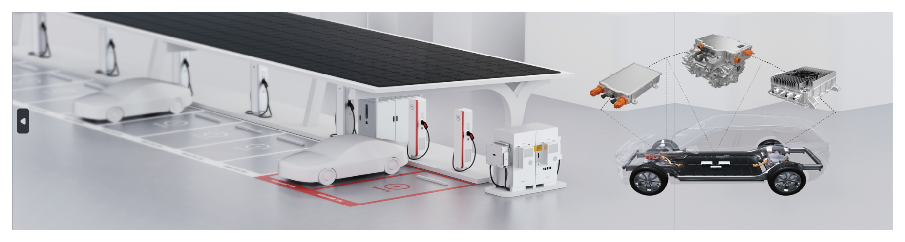The new power system composed of photovoltaic power generation is an important part of achieving carbon peak and carbon neutrality, and it is bound to integrate with energy storage, promoting the development of integrated photovoltaic-storage-charging systems. With the rapid development of 800V new energy vehicles, fast charging piles will be integrated into the photovoltaic-storage-charging system in the future, forming a new power system or microgrid. On one hand, bidirectional charging and discharging at high voltage is a typical feature of the new photovoltaic-storage-charging system. Silicon carbide devices, by upgrading module power and energy conversion efficiency, will be widely used in super-fast charging infrastructure. On the other hand, new energy vehicles are the largest application scenario for silicon carbide power semiconductors. Silicon carbide, with its high voltage resistance, high temperature resistance, and high-frequency characteristics, is expected to rapidly replace silicon-based and IGBT in high-voltage systems, significantly improving vehicle performance and optimizing the overall vehicle architecture. In addition to charging piles and wireless charging, silicon carbide power semiconductors have multiple in-vehicle application scenarios, including motor controllers, onboard chargers (OBC), DC-DC converters, and air compressors.